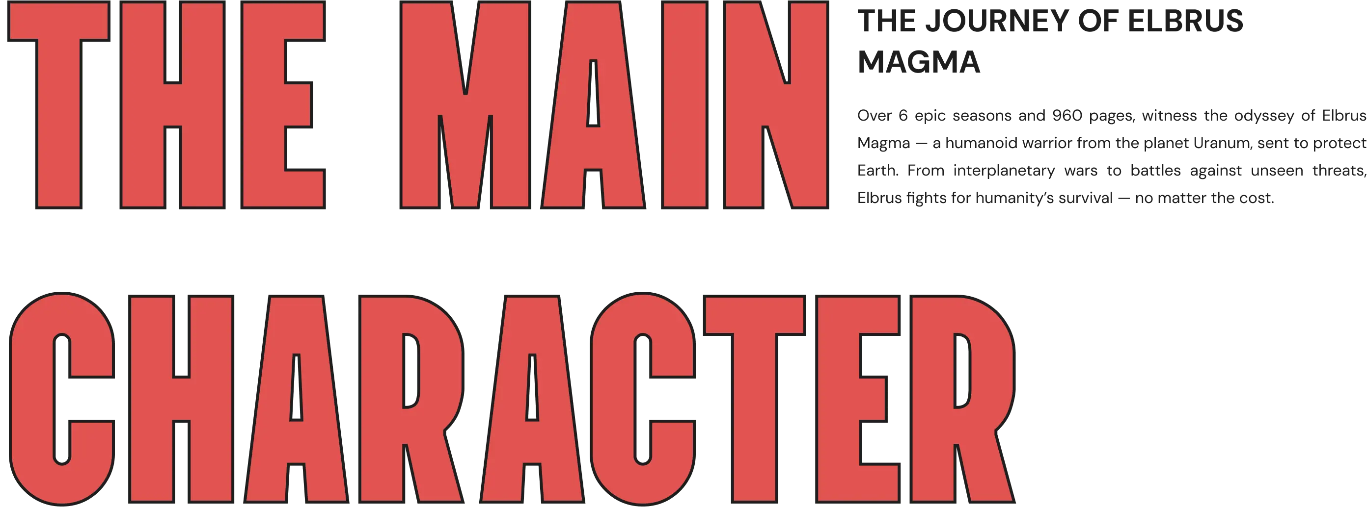 Over 6 epic seasons and 960 pages, witness the odyssey of Elbrus Magma — a humanoid warrior from the planet Uranum, sent to protect Earth. From interplanetary wars to battles against unseen threats, Elbrus fights for humanity’s survival — no matter the cost.